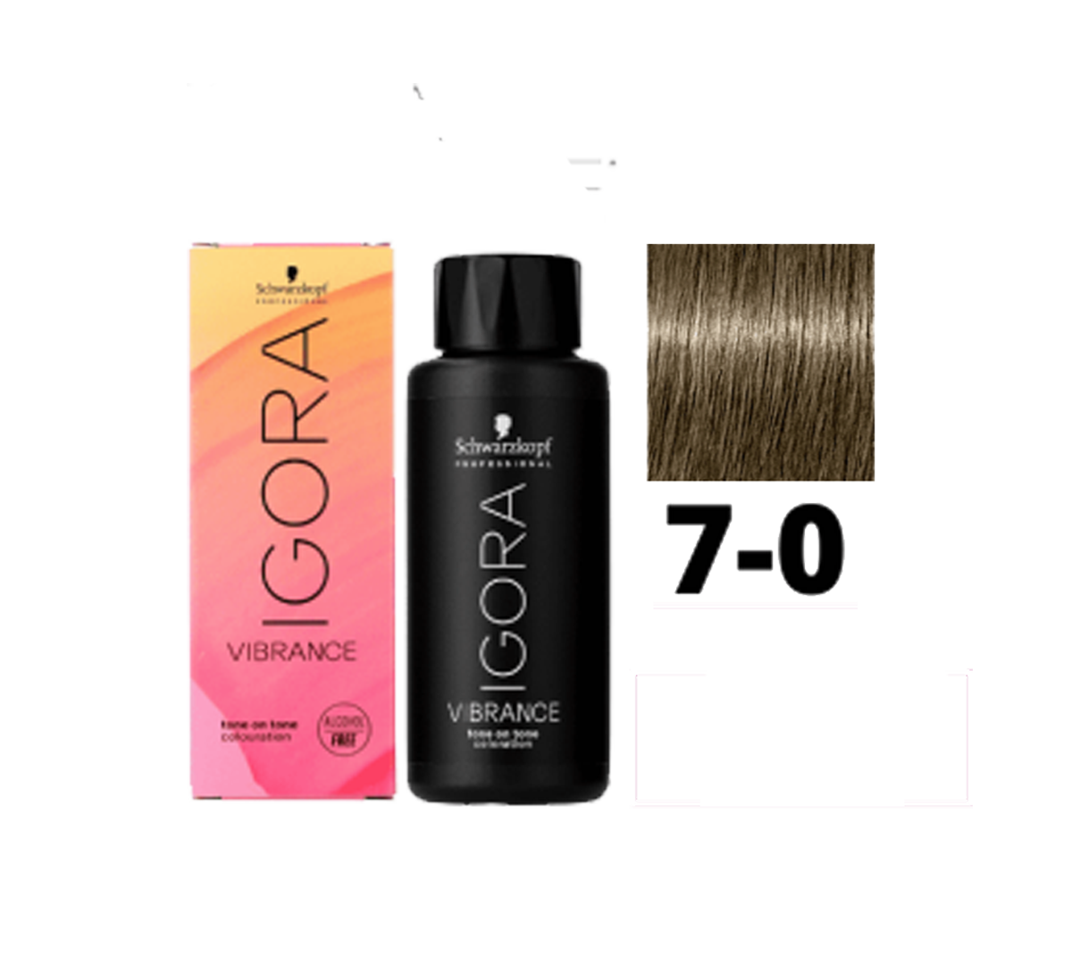 - Tinte semipermanente de la línea Igora Vibrance de Schwarzkopf, con el tono 7-0, que corresponde a un rubio medio natural.